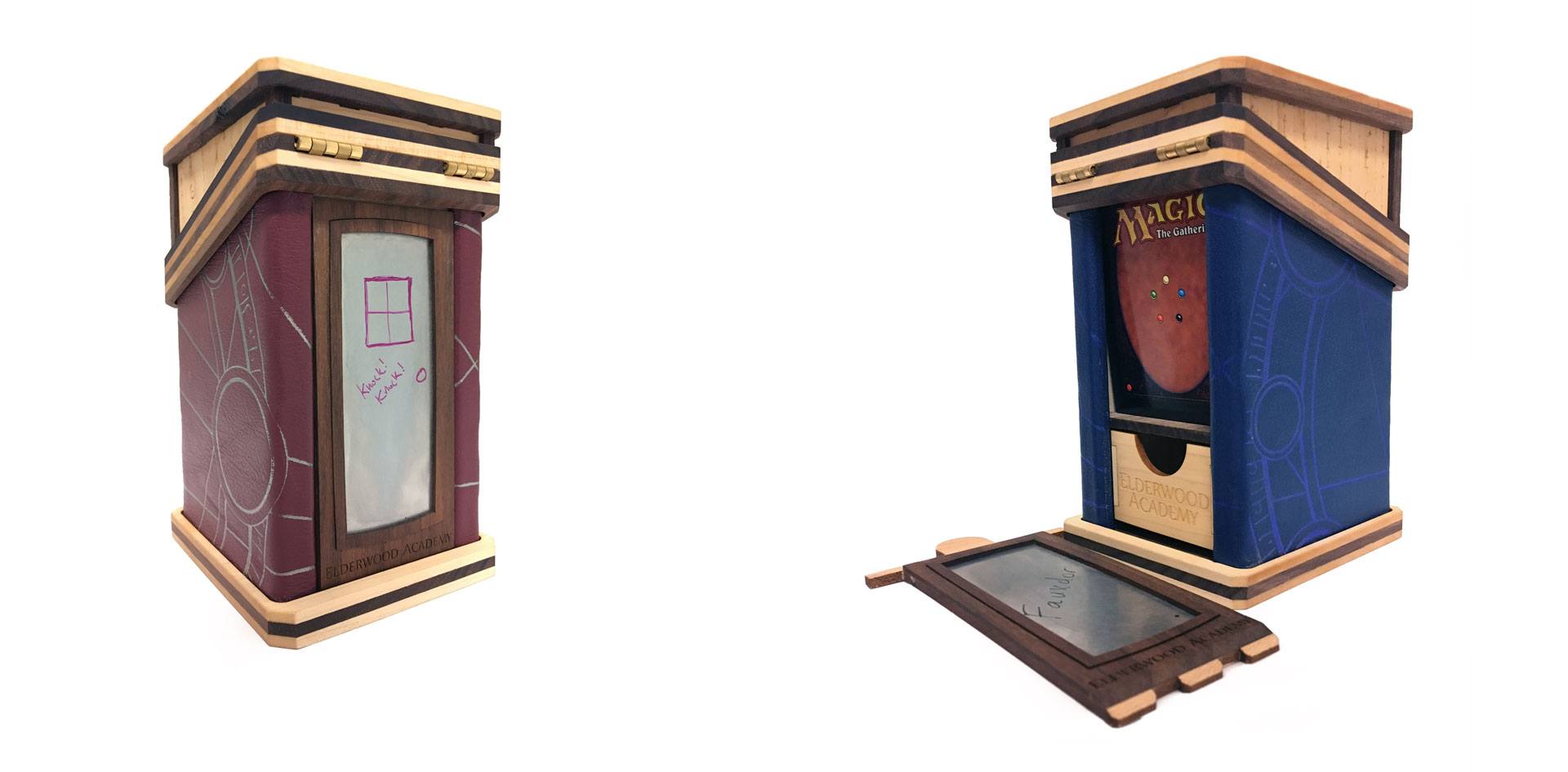 On today’s venture through Bloggerton we’ll be looking at the evolution of our M:tG wooden Deck Box’s booty – the back panel we’ve dubbed “The Portal” (runner-up name: the Fauxdoor) ‘cause it looks like one and also there’s Magic on the other side! We’ve gone through a dozen or so versions of The Portal and landed on a space that doubles as a way to keep track of your life during a game of M:tG.